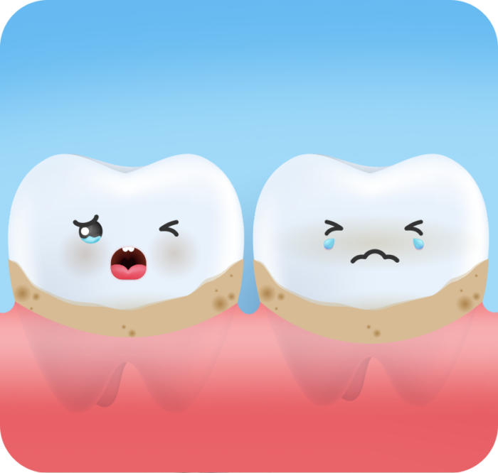 Diverso è il caso in cui vedete incrostazioni giallastre o marroncine, specialmente dietro agli incisivi inferiori (dove appoggia la lingua). Se al tatto (o passandoci l’unghia) la superficie è ruvida e irregolare, quello è tartaro. In questo caso, la placca batterica non rimossa si è calcificata grazie ai sali minerali della saliva.